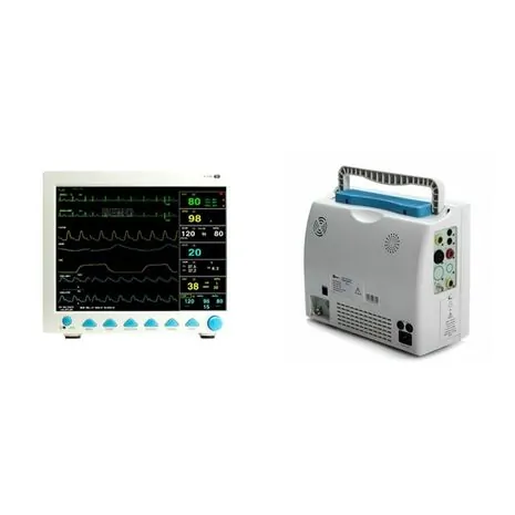Patient monitor CMS8000 is designed for real-time monitoring of ECG, SpO2, NIBP, temperature, and respiration. Suitable for hospitals and clinics to ensure accurate patient monitoring. Brands include Contec (China), Mindray, and Philips.